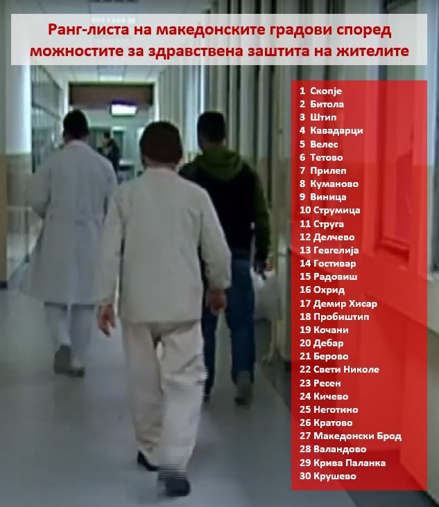 Крива Паланка е на дното на градови со можности за здравствена заштита на жителите, покажа и истражување на Центарот за граѓански комуникации за степенот на здравствена заштита на жителите во 30-те здравствени центри во земјата, реализирано во 2024 година.